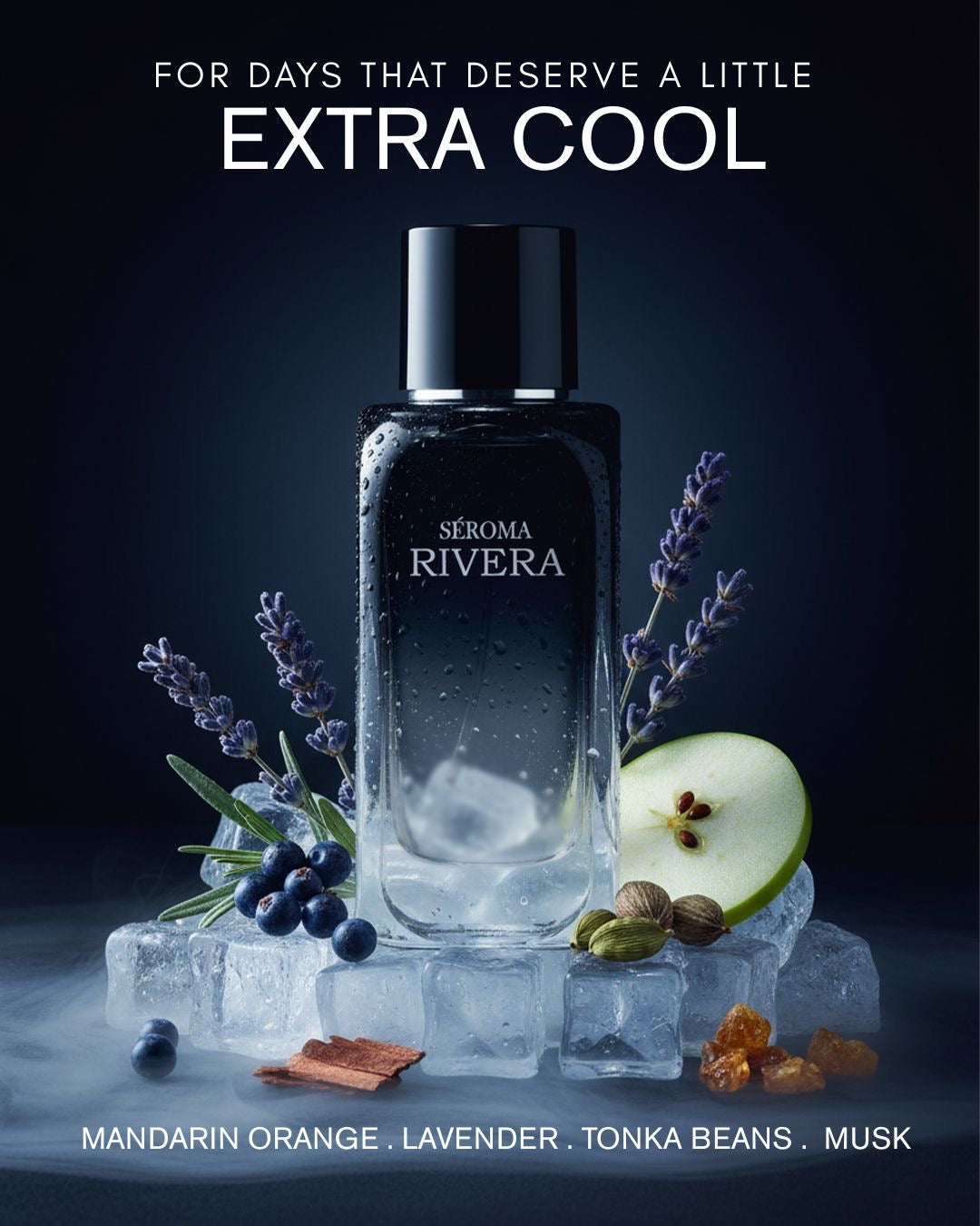 The scent bursts open with crisp apple, tropical papaya, a cooling ice accord, and spicy cardamom — creating an energetic, fruity-spicy opening.
